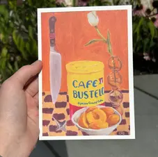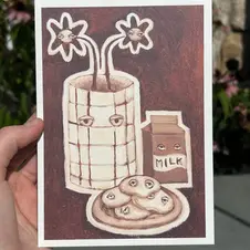 My skillset is in colorful still life and digital collage compositions. Food and knick knacks are my favorite things to paint.